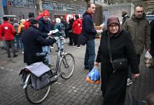28-2-2026, Nederland, Rotterdam De SP probeert bij de Afrikaander Markt kiezers te interesseren voor de gemeenteraadsverkiezingen. De interesse blijkt niet al te groot. (niet voor Trouw, Parool, AD en NRC)