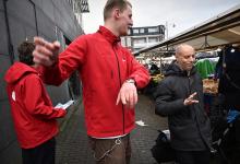 campagne; SP; Socialistische Partij; Gemeenteraadsverkiezingen; politiek; gemeentepolitiek; flyeren; Afrikaandermarkt; Jimmy Dijk