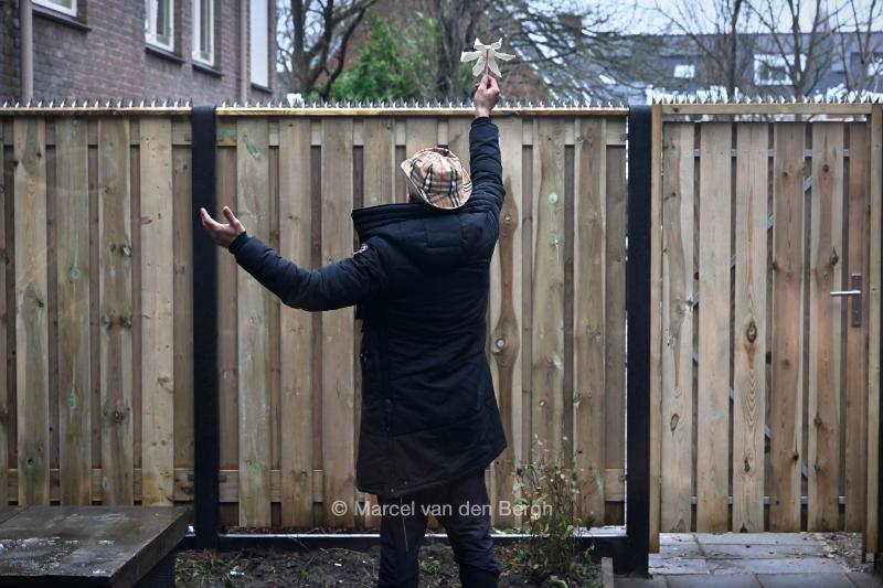12-1-2026, Nederland, Dordrecht Opvang bij Het Leger des Heils voor clienten met complexe psychische problemen. Een client op de buitenplaats is nogal beweeglijk. foto Marcel van den Bergh (niet voor Trouw, Parool, AD en NRC)