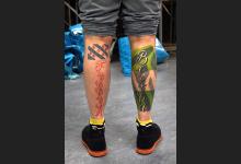 VRIJ 14-10-2025, Nederland, Rotterdam Johan Muurlink de boterhammenman smeert elke dag in de vroege ochtend boterhammen voor kinderen die zonder ontbijt naar school gaan. De namen van zijn ouders staan op zijn kuiten getatoueerd. foto Marcel van den Bergh (niet voor Trouw, Parool, AD en NRC)