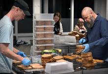 VRIJ 14-10-2025, Nederland, Rotterdam Johan Muurlink de boterhammenman (r) smeert elke dag samen met andere vrijwilligers in de vroege ochtend boterhammen voor kinderen die zonder ontbijt naar school gaan. foto Marcel van den Bergh (niet voor Trouw, Parool, AD en NRC)
