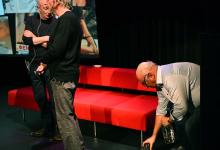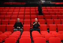 10-10-2025, Nederland, Boxmeer theater The Guys With The Same Name door fotografenduo Hans Toonen en Hans Wientjens opluchting na de geslaagde voorstelling foto Marcel van den Bergh (niet voor Trouw, Parool, AD en NRC)