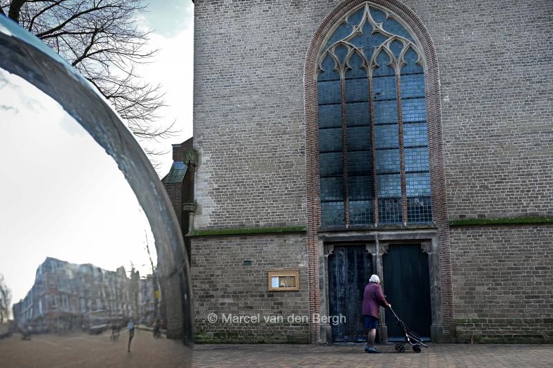 26-2-2026, Nederland, Ede brandstichting bij 3 kerken in Ede De Hervormde Gemeente Oude Kerk waarvan de deur vlam heeft gevat en het glas in lood zwaar beschadigd is. . (niet voor Trouw, Parool, AD en NRC)