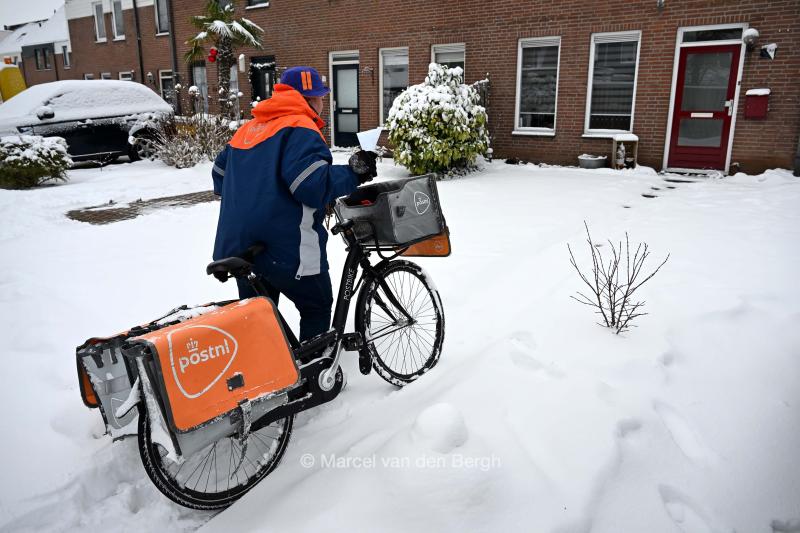 De postbezorger van PostNl blijft haar werk doen op de fiets.