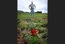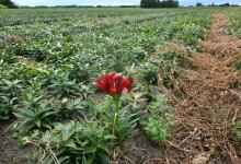 22-8-2025, Nederland, Markelo Evert Slagman bij een veld met lelieteelt waar nog 1 bloem is overgebleven na de oogst. foto Marcel van den Bergh (niet voor Trouw, Parool, AD en NRC)