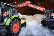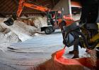 26-1-2026, Nederland, Breda Het uitrijpunt van strooizout van Rijkswaterstaat. Zout wordt geladen in een strooiwagen. foto Marcel van den Bergh (niet voor Trouw, Parool, AD en NRC)