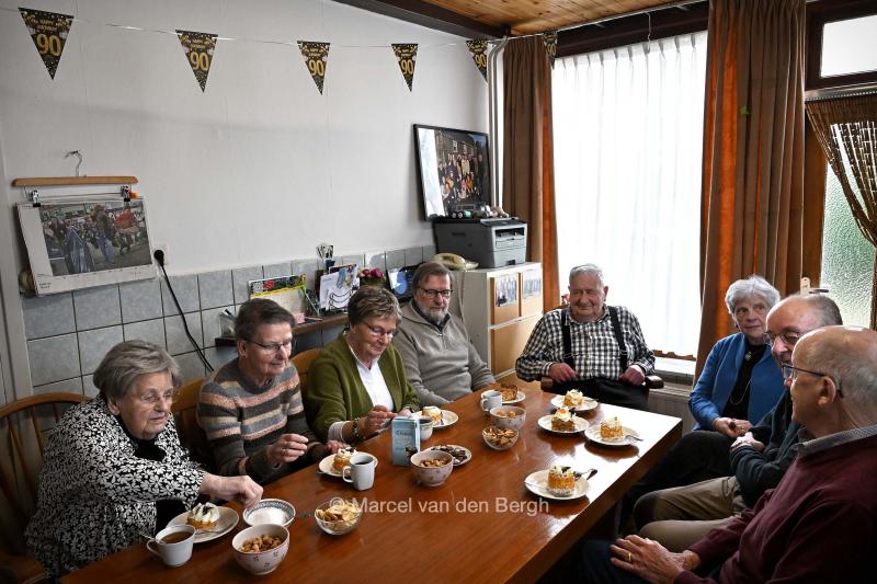 VRIJ 21-2-2026, Nederland, Appeltern Een man (kopse kant tafel) viert zijn 90 e verjaardag. Zijn broers en zussen (en 2x aanhang) komen op de koffie. (eigen fam publ geen probleem) (niet voor Trouw, Parool, AD en NRC)