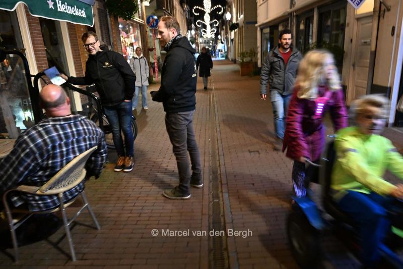 Gebedsgenezer Jelthe Kloens leidt de geloofsbeweging Schud de Plaatsen. Op straat in Kampen verkondigen zijn volgers het evangelie. Een man op het terras wordt aangesproken.