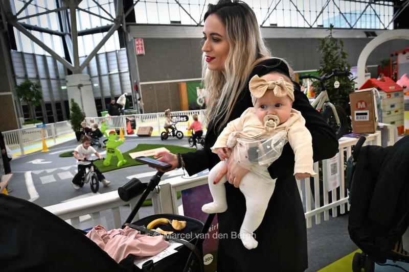 19-2-2026, Nederland, Amsterdam Negenmaandenbeurs in de Rai Een moeder en haar baby. (niet voor Trouw, Parool, AD en NRC)