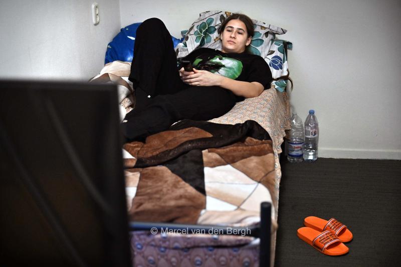 12-11-2025, Nederland, Putte Arbeidsmigrant Loana na haar werk op haar kamer kijkende naar Netflix. foto Marcel van den Bergh (niet voor Trouw, Parool, AD en NRC)