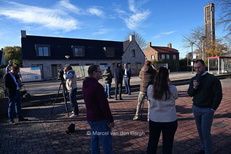 Burgemeester Moerkerke (achtergrond) staat de vele pers te woord.
