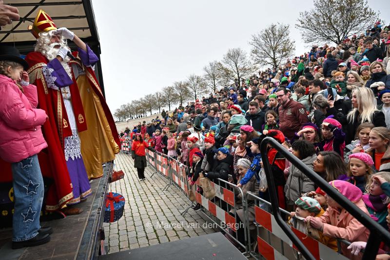 15-11-2025, Nederland, Lent Intocht Sinterklaas aan de Spiegelwaal. Na voet aan wal gezet te hebben spreekt hij de kinderen toe. foto Marcel van den Bergh (niet voor Trouw, Parool, AD en NRC)