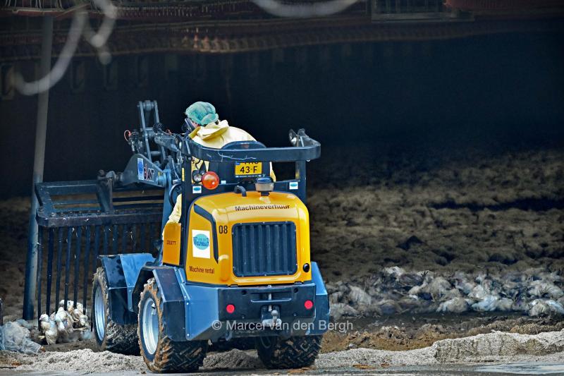 29-12-2025, Nederland, Ysselsteyn vogelgriep in Noord-Limburg Kippen worden geruimd. Vergaste kippen worden bij elkaar gebracht. foto Marcel van den Bergh (niet voor Trouw, Parool, AD en NRC)