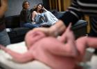 VRIJ 23-12-2025, Nederland, Rossum geboorte baby thuis Moeder en oma bekijken hoe de verloskundige het babytje onderzoekt. (vrij gebruik) foto Marcel van den Bergh (niet voor Trouw, Parool, AD en NRC)