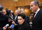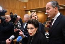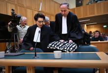 13-2-2026, Nederland, Den Bosch uitspraak in zaak over dodelijk ongeluk met Stint Advocaten Geert-jan en Carry Knoops nemen plaats in de rechtszaal. Carry eist het zitkussen op. (niet voor Trouw, Parool, AD en NRC)