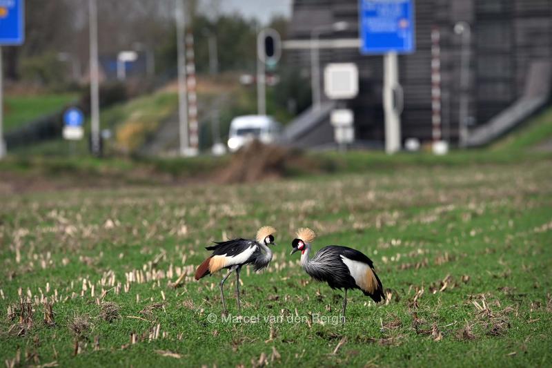 5-11-2025, Nederland, Uithoorn Zeldzame kroonkraanvogels gespot in Mijdrechtse polder. foto Marcel van den Bergh (niet voor Trouw, Parool, AD en NRC)