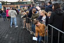 21-12-2025, Nederland, Den Bosch Ouders en hun kinderen in de rij voor de brievenbus bij het Glazen Huis dat geld inzamelt voor Spieren voor Spieren. foto Marcel van den Bergh (niet voor Trouw, Parool, AD en NRC)