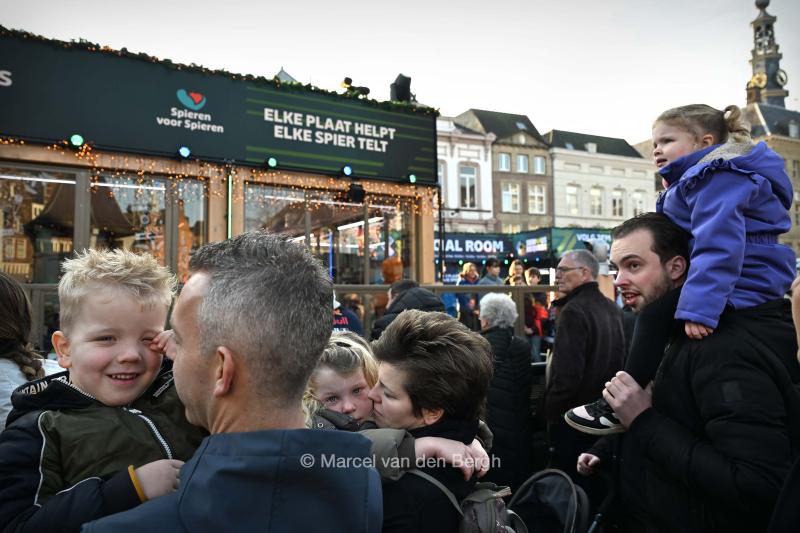 21-12-2025, Nederland, Den Bosch Ouders en hun kinderen bij het Glazen Huis dat geld inzamelt voor Spieren voor Spieren. foto Marcel van den Bergh (niet voor Trouw, Parool, AD en NRC)