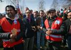 24-3-2026, Nederland, Veldhoven Protestactie werknemers chipmachinefabrikant ASML tegen geplande ontslagen. Na het protest buiten de poort gaan de werknemers weer terug naar hun werk. (niet voor Trouw, Parool, AD en NRC)