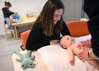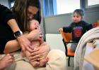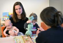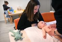 VRIJ 25-3-2026, Nederland, Maasdriel (kleindochter fotograaf, gebruik geen probleem) Moeder bezoekt met haar 3 maanden oude baby (jongetje) het consultatiebureau voor diverse vaccinaties. Haar iets oudere dochtertje mocht mee. De baby wordt eerst onderzocht. (niet voor Trouw, Parool, AD en NRC)