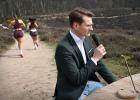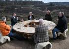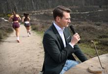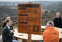 23-3-2026, Nederland, Rheden Minister Jaimi van Essen van Landbouw, Visserij, Voedselzekerheid en Natuur wordt rondgeleid op de Veluwezoom. Onderweg spreekt hij met betrokkenen over natuurbeheer en natuurherstel aan de Natuurtafel die in het landschap staat. (niet voor Trouw, Parool, AD en NRC)