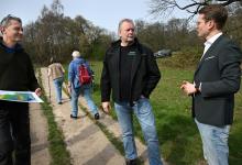 23-3-2026, Nederland, Rheden Minister Jaimi van Essen (l) van Landbouw, Visserij, Voedselzekerheid en Natuur wordt rondgeleid op de Veluwezoom. Onderweg spreekt hij met betrokkenen over natuurbeheer en natuurherstel aan de Natuurtafel die in het landschap staat. (niet voor Trouw, Parool, AD en NRC)