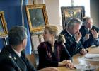16-9-2008 Den Bosch gestolen schilderijen Frans Hals Museum terecht tijdens een persconferentie worden ze getoond. Karel Schampers van het Frans Hals Museum legt de pers uit over het belang van de schilderijen. Naast hem zit Albert van de Wetering van de Politie Noord Brabant. Daarnaast Mariska Wijnbelt van het OM en ook omkijkende Rob van Velsen ook van de Politie Brabant Noord. roof; schilderijenroof; Frans Hals Museum; kunst; kunstroof; klassieke kunst; schilderij; stelen; diefstal; criminaliteit; helen; heer; foto Marcel van den Bergh