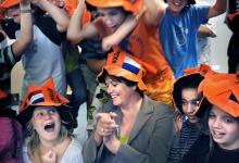 oranje; politiek; oranjegevoel; voetbalgekte; oranjegekte; Nederlands Elftal; kind; kinderen; school; basisschool; onderwijs; Ella Vogelaar; minister; politiek; politicus; werkbezoek; regering; regeren; kabinet; burger; aandachtswijk; aandachtswijken; aan