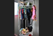 VRIJ 10-12-2025, Nederland, Oud-Beijerland Hondenfotograaf Kimberley van Motherpuppers Studio aan het werk. Kleding voor honden hangen aan het rek. foto Marcel van den Bergh (niet voor Trouw, Parool, AD en NRC)