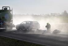 21-3-2026, Duitsland; Gangelt rampenoefening waarbij 3 landen, Nederland, Duitsland en Belgie, samenwerken 700 hulpverleners zijn actief bij een fictieve kettingbotsing. Nederlandse brandweermannen zijn zojuist bij een lekkende tankauto geweest. (niet voor Trouw, Parool, AD en NRC)