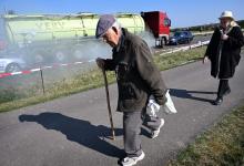 21-3-2026, Duitsland; Gangelt rampenoefening waarbij 3 landen, Nederland, Duitsland en Belgie, samenwerken 700 hulpverleners zijn actief bij een fictieve kettingbotsing. Omwonenden lopen voorbij. (niet voor Trouw, Parool, AD en NRC)