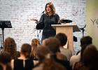 VRIJ 25-1-2026, Nederland; Gorinchem Godfluencer Noor van der Weijden (23) spreekt voor een groep jongeren bij de Evangelie Gemeente Sion. Het aantal gelovigen onder jongeren stijgt. (niet voor Trouw, Parool, AD en NRC)