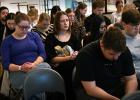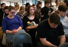 VRIJ 25-1-2026, Nederland; Gorinchem Godfluencer Noor van der Weijden (23) spreekt voor een groep jongeren bij de Evangelie Gemeente Sion. Het aantal gelovigen onder jongeren stijgt. Jongeren bidden samen. (niet voor Trouw, Parool, AD en NRC)