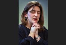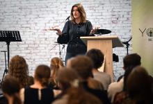 VRIJ 25-1-2026, Nederland; Gorinchem Godfluencer Noor van der Weijden (23) spreekt voor een groep jongeren bij de Evangelie Gemeente Sion. Het aantal gelovigen onder jongeren stijgt. Voor de bijeenkomst begint wordt er door de organisatie en Noor gebeden. (niet voor Trouw, Parool, AD en NRC)