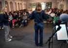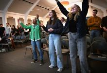 VRIJ 25-1-2026, Nederland; Gorinchem Godfluencer Noor van der Weijden (23) spreekt voor een groep jongeren bij de Evangelie Gemeente Sion. Het aantal gelovigen onder jongeren stijgt. Jongeren zingen gebeden. (niet voor Trouw, Parool, AD en NRC)