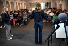VRIJ 25-1-2026, Nederland; Gorinchem Godfluencer Noor van der Weijden (23) spreekt voor een groep jongeren bij de Evangelie Gemeente Sion. Het aantal gelovigen onder jongeren stijgt. Na afloop wordt er nog wat gedronken. (niet voor Trouw, Parool, AD en NRC)