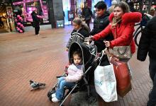 27-11-2025, Nederland, Eindhoven Black Friday zichtbaar in het winkelcentrum Een groep jongens heeft duidelijk dezelfde winkel aangedaan. foto Marcel van den Bergh (niet voor Trouw, Parool, AD en NRC)