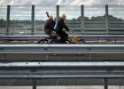 29-9-2025, Nederland, Rotterdam De nieuwe A16 en zijn Rottemerentunnel zijn officieel geopend. Maandag 6 oktober gaan er voor het eerst auto's over rijden. Voor nu komen er 3 fietsers voorbij??? foto Marcel van den Bergh (niet voor Trouw, Parool, AD en NRC)