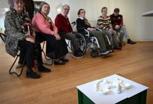 30-1-2026, Nederland, Den Haag Kunstconnectie In Kunstmuseum Den Haag krijgen mensen met dementie en hun mantelzorgers een rondleiding op een dementievriendelijke manier. Daarbij krijgen ze kleine opdrachtjes. Zo maakten ze met een bolletje klei een kleine sculptuur. (niet voor Trouw, Parool, AD en NRC)
