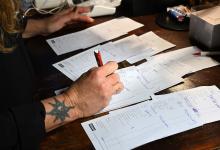 VRIJ 28-11-2025, Nederland, Rotterdam bruine kroeg Cafe Dakrari uitgeroepen tot immaterieel Rotterdams erfgoed De kastelein turft de drankjes. foto Marcel van den Bergh (niet voor Trouw, Parool, AD en NRC)