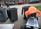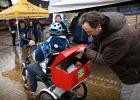 17-3-2026, Nederland, Oss Medewerkers van de gemeente zetten stemhokjes op bij diverse stemlocaties. Een losgelopen wiel van een stembus wordt onderweg gerepareerd. (niet voor Trouw, Parool, AD en NRC)