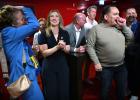 18-3-2026, Nederland, Doetinchem Verkiezingsavond gemeenteraadsverkiezingen in het theater waar alle partijen samenkomen. Leden van GemeenteBelangen blij en beduusd bij het horen van de eerste uitslagen. Patrick Moors helemaal rechts. (niet voor Trouw, Parool, AD en NRC)