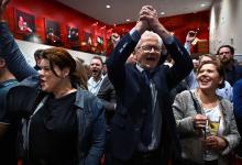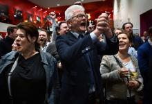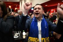 18-3-2026, Nederland, Doetinchem Verkiezingsavond in het theater waar alle partijen samenkomen. Leden van Forum voor Democratie met in het midden Lambert van Meijeren juicht het uit na het horen van de eerste uitslagen. (niet voor Trouw, Parool, AD en NRC)