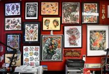 24-1-2026, Nederland, Utrecht tattooshop Magic Tattoo ontwerpen aan de muur (niet voor Trouw, Parool, AD en NRC)