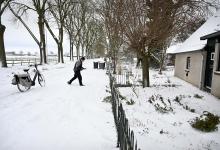 7-1-2026, Nederland, Appeltern winter en veel sneeuw in Nederland De krantenbezorger in het buitengebied blijft zijn werk doen op de fiets. foto Marcel van den Bergh (niet voor Trouw, Parool, AD en NRC)