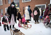 7-1-2026, Nederland, Druten winter en veel sneeuw in Nederland Veel kinderen van basisschool de Kubus worden door hun ouders opgehaald met de slee. foto Marcel van den Bergh (niet voor Trouw, Parool, AD en NRC)