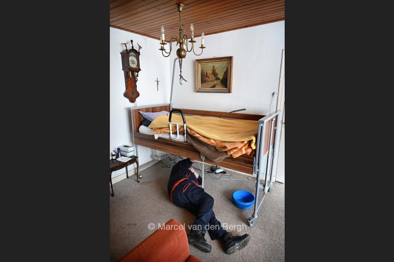 VRIJ 1-4-2026, Nederland, Appeltern Een bed wordt geinstalleerd door medipoint in de huiskamer van een oudere zodat deze de trap naar boven niet meer ophoeft en voor de verzorging door de thuiszorg. (niet voor Trouw, Parool, AD en NRC)