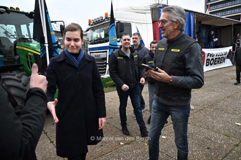 Forum voor Democratie lijsttrekker Lidewij de Vos was 1 van de sprekers. Een boer steekt zijn duim op en Lidewij wil hem de hand schudden.