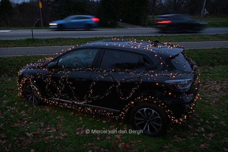 VRIJ 14-12-2025, Nederland, Aalten kerst omdat het moet een verlichte auto foto Marcel van den Bergh (niet voor Trouw, Parool, AD en NRC)