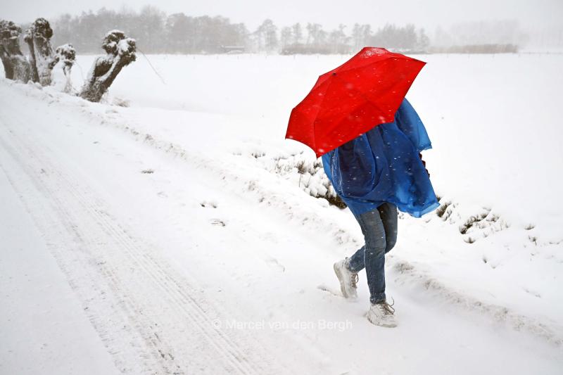 7-1-2026, Nederland, Zaltbommel winter en veel sneeuw in Nederland Een wandelaar in het buitengebied trotseert de sneeuw. foto Marcel van den Bergh (niet voor Trouw, Parool, AD en NRC)